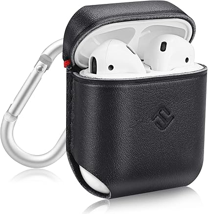 Amazon Com Fintie Genuine Leather Case For Airpods Slim Fit Protective Cover Skin With Carabiner For Airpods 1 And Airpods 2 Charging Case Black Home Audio Theater
