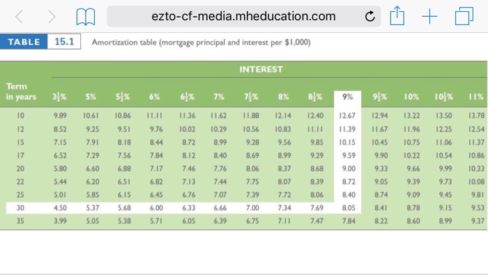 Amortization Table Mortgage