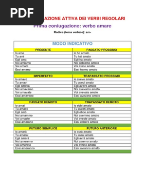 La Coniugazione Attiva Del Verbo Amare Pdf