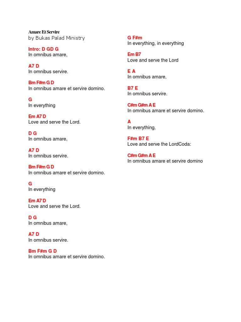 Amare Et Servire Lyrics Chords